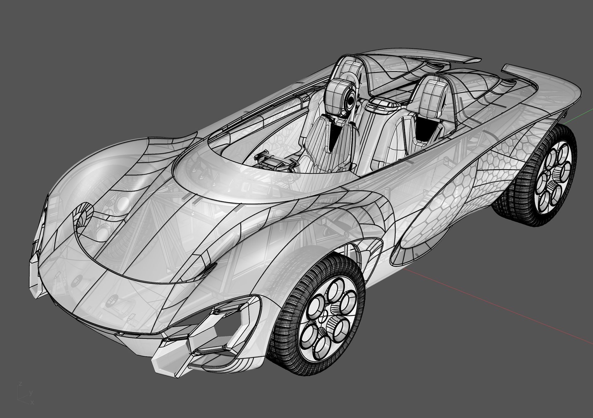 Fully functioning, street-legal concept car developed by the students and alumni of Savannah College of Art and Design. Under the guidance of Professor Rafael Corazza, personal contributions include the development of exterior volumes in both Sub-D and NURBS, interior tub, rear seating, soft forms for rendering, wheel covers, rear diffuser, and aft surface sculpture. Utilized Massivit 3D printing; producing one of the first roadworthy vehicles constructed through 3D printing, alongside an incredibly talented group of peers and alumni.