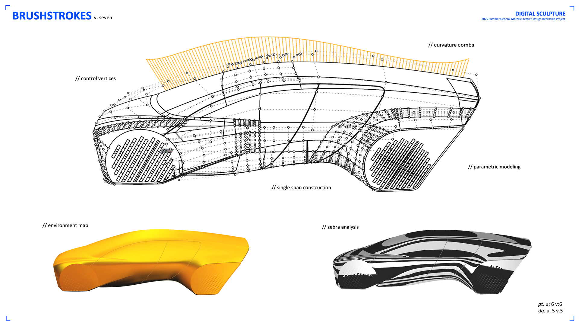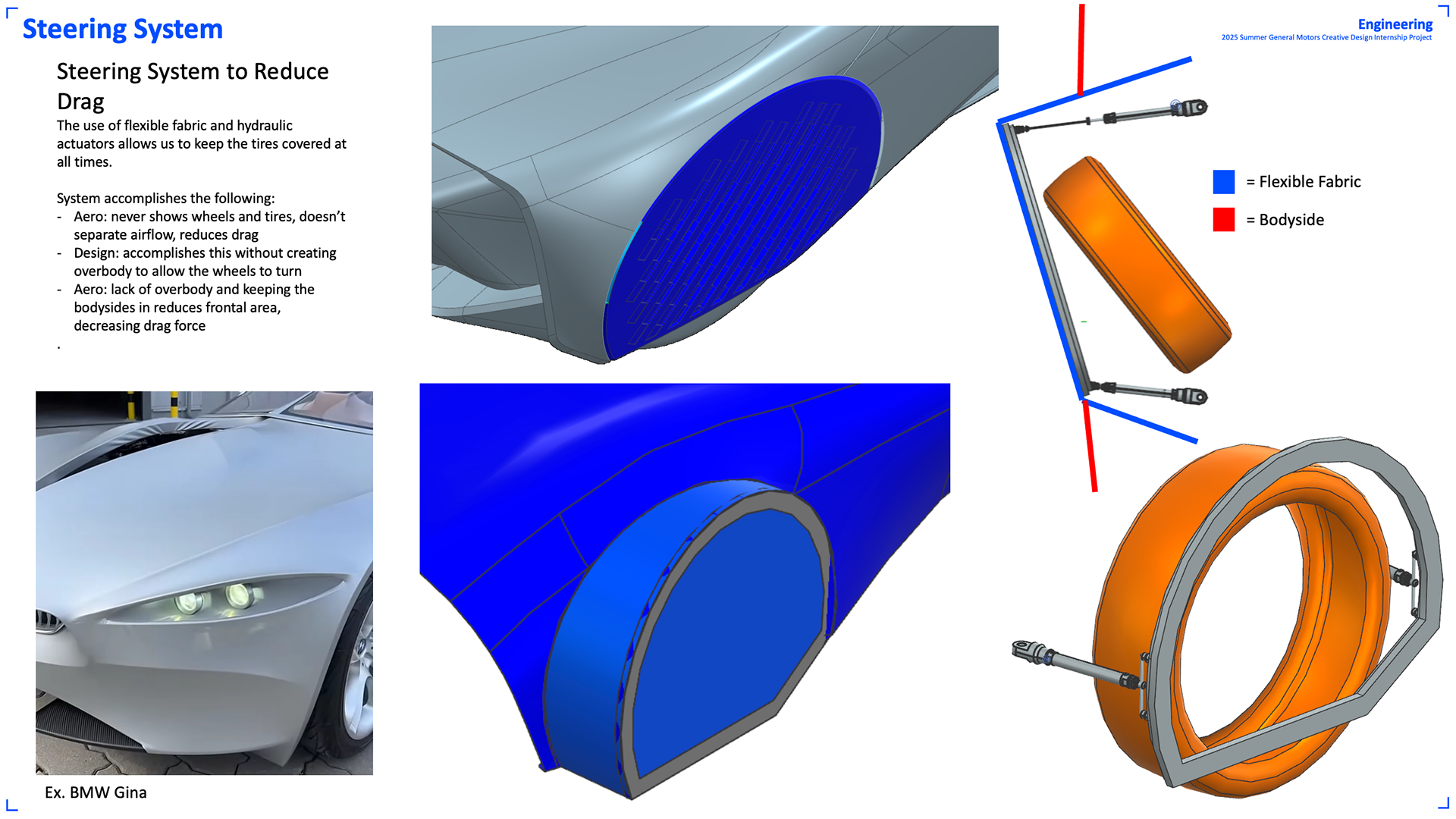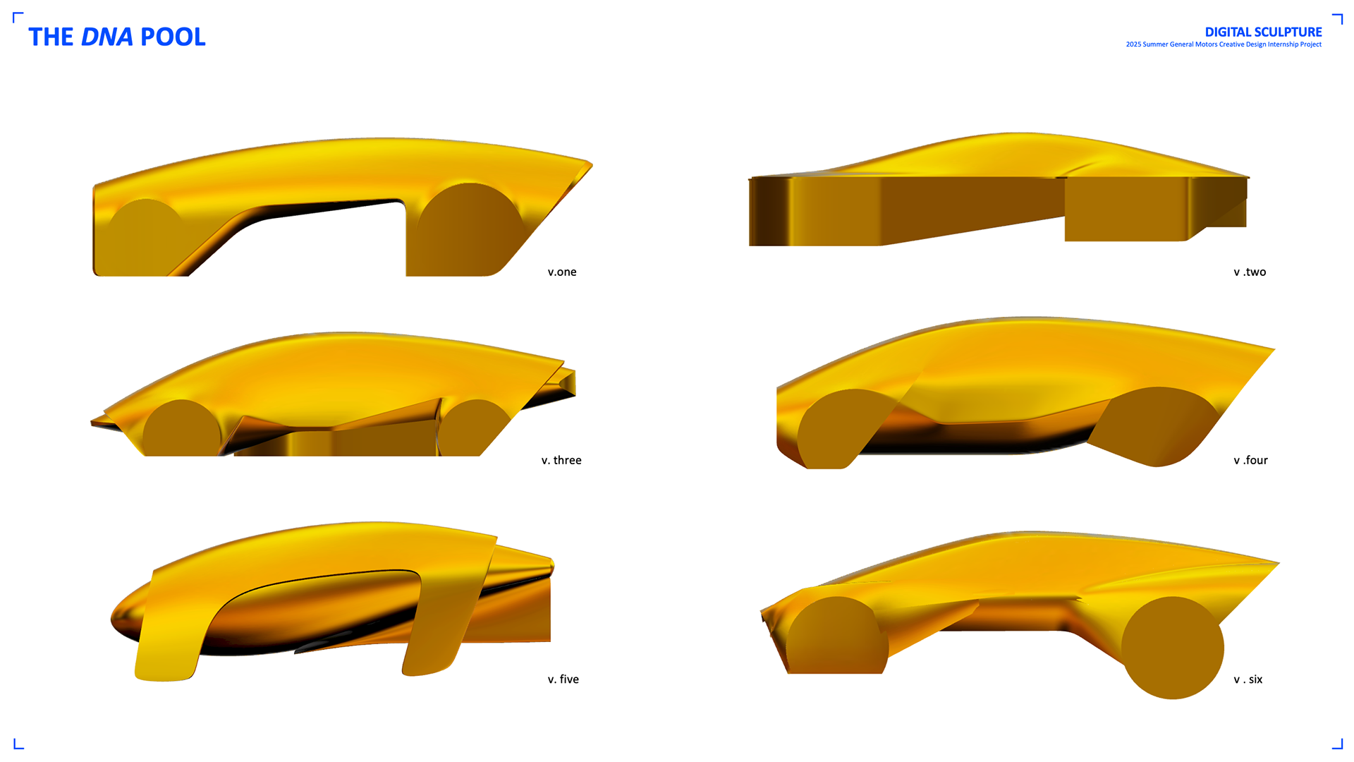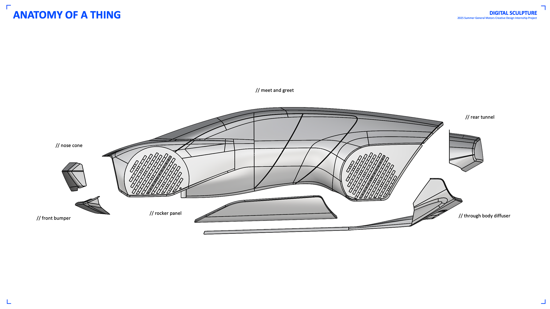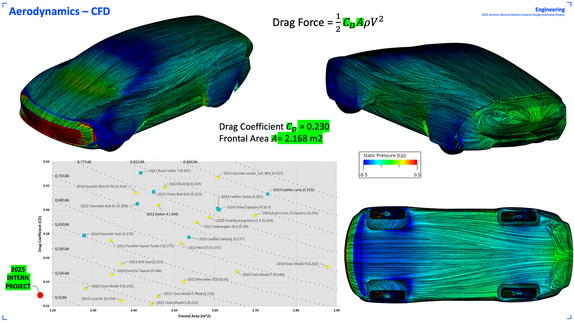 Developed during an internship at General Motors Advanced Design Studio in Pasadena, California, this project explored advanced aerodynamic solutions for a next-generation electric vehicle aimed at Gen Alpha. The scope included Alias CAD development, a 1/3 scale clay model, engineering, fluid dynamics analysis and design for manufacturability.